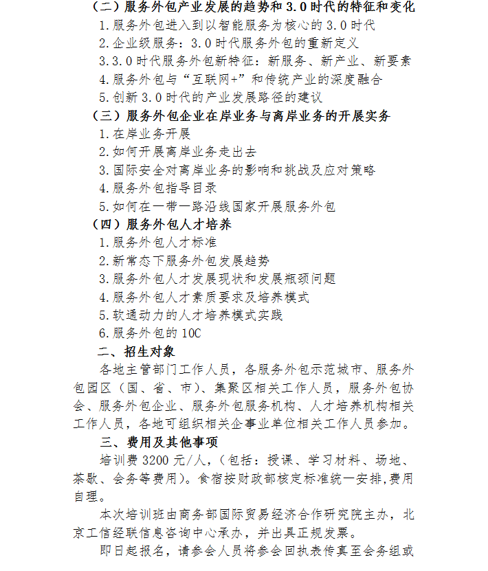 關(guān)于舉辦“一帶一路”背景下服務(wù)外包創(chuàng)新發(fā)展實(shí)務(wù)操作研修班的通知